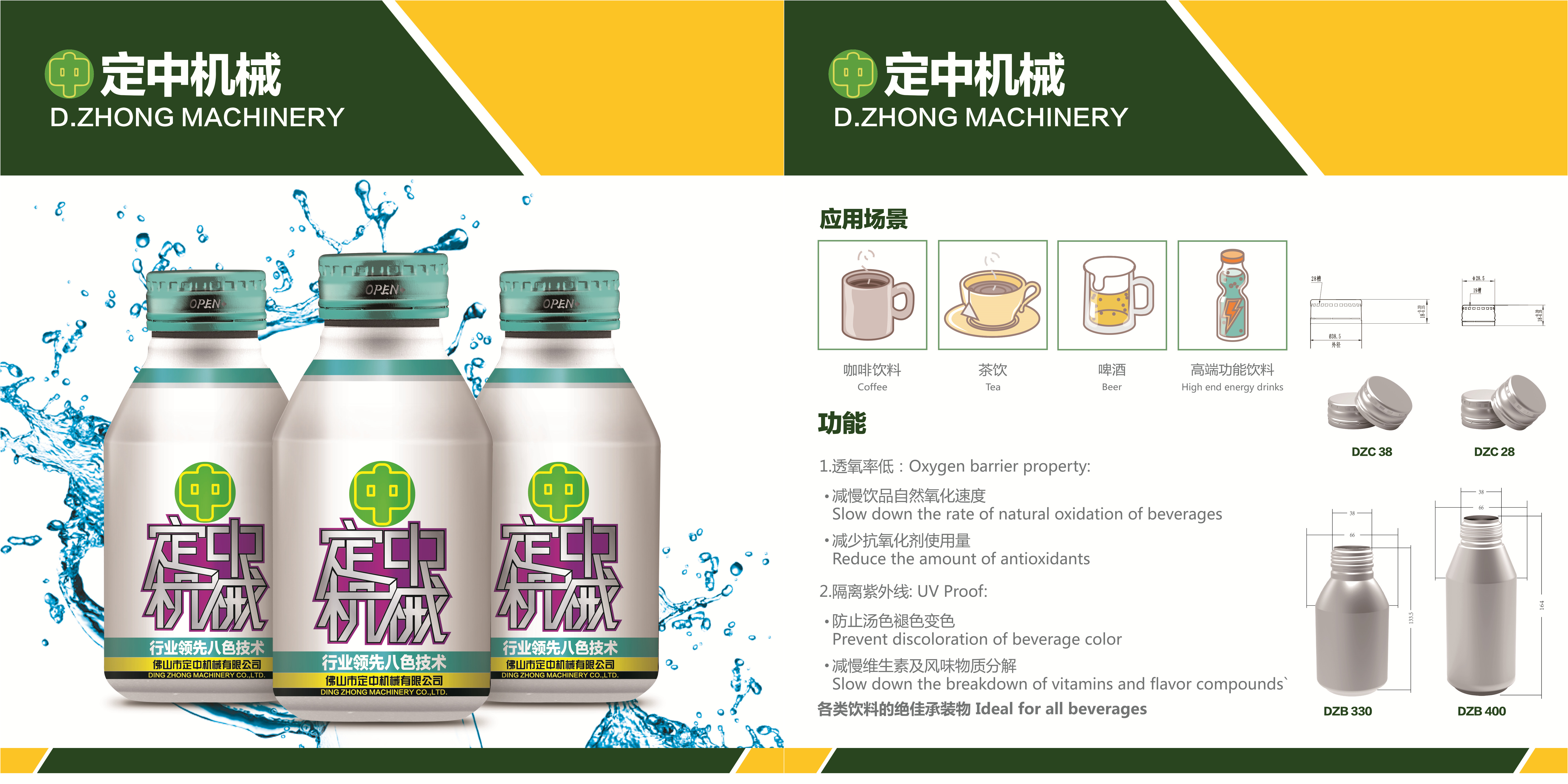 佛山市定中機械有限公司是廣東省為數不多的民營科技,高新企業,雄鷹計劃支持企業。它是國內頗具規模從事設計、制造成套“皇冠瓶蓋(啤酒蓋)全自動生產線”產品的專業制造商。我們的定中牌“皇冠瓶蓋全自動生產線”產品已獲得多項國家專利。公司客戶遍布北京、上海、廣州、河南、山東、順德、昆明、長春、武漢、杭州、東莞、大理等全國多個大中型城市。定中機械不僅被國內盛名的大型包裝企業選用,而且現已遠銷西班牙、巴西、越南和菲律賓、肯尼亞等地,深得廣大客戶的認同和青睞。